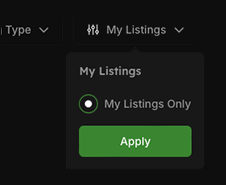 After logging into the account that was used to create the listing, find the tournament you'd like to update or delete. You can use the "My Listings" filter to show just your listings.